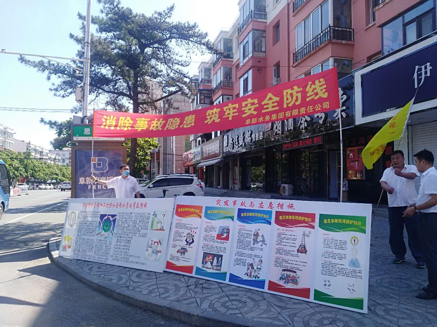 四、城市供水。水务集团对安全生产月工作进行安排部署由主管安全副总经理、安监武保处处长组织相关人员开展安全生产隐患排查自检自查工作,对排查出的各种安全隐患,采取有效措施进行整改。更换各水厂、营业公司灭火器236个,在集团公司LED显示屏播放安全标语,为每个水厂营业公司都挂上安全条幅和安全旗,并且组织基层单位进行新《安全生产法》知识学习答题活动。汛期来临,在隐患排查中发现6处安全隐患已全部整改完毕,6月16日结合集团公司实际上街进行“消除事故隐患、筑牢安全防线”主题宣传活动,共发放安全手册、宣传单86份,集团公司结合工作实际,将继续做好安全生产月的各项工作。